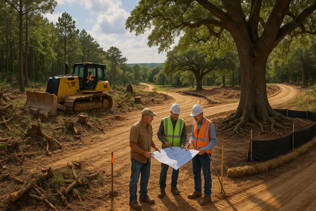 Once we’ve read the land and agreed on a plan, we move into the visible, heavy work phase. This is where Palestine TX land starts to look very different, very quickly—but we still follow a careful order of operations.